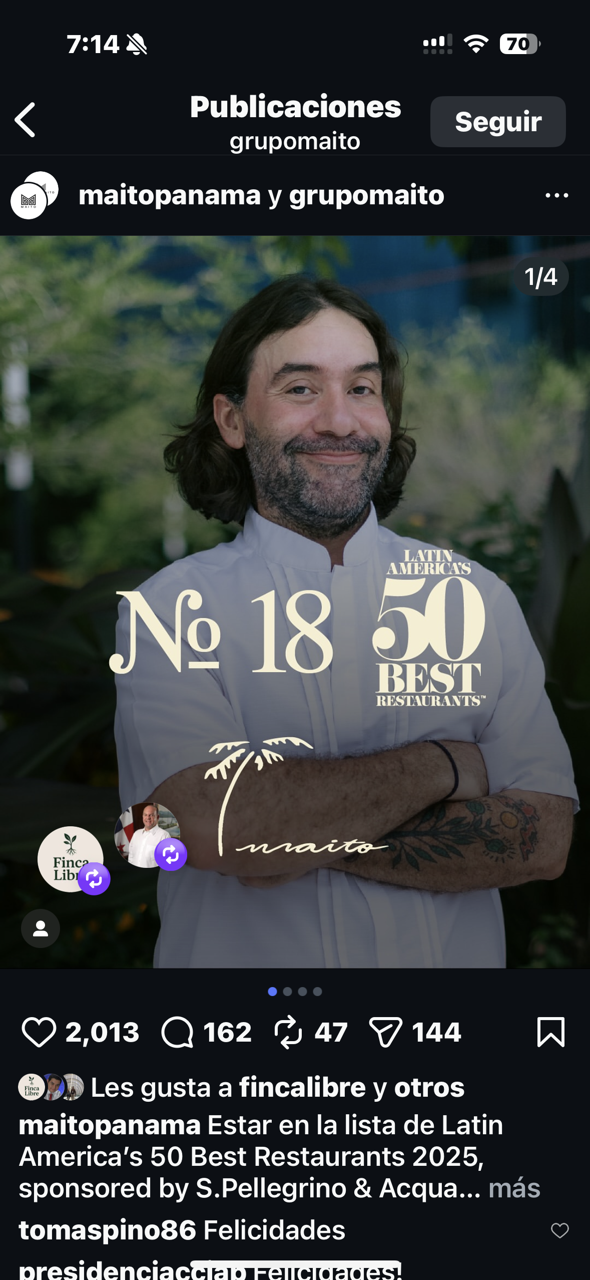 Ubicado en el puesto número 18 de la lista regional, Maito continúa siendo el referente indiscutible de la alta cocina en Panamá. Bajo la dirección del chef Mario Castrellón, el restaurante ha logrado mantenerse en este prestigioso listado por nueve años consecutivos, evolucionando constantemente su propuesta.