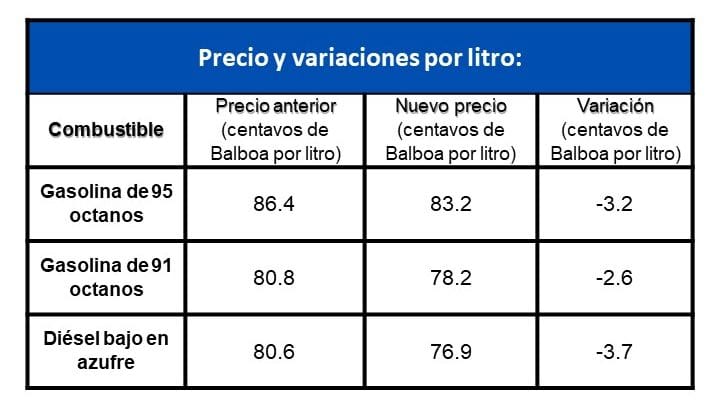 La Secretaría Nacional de Energía informó que a partir del viernes 26 de diciembre entran en vigencia nuevos precios máximos de venta al público para los combustibles líquidos en Panamá. El ajuste refleja reducciones en todos los tipos, con caídas de hasta 3.7 centavos por litro.